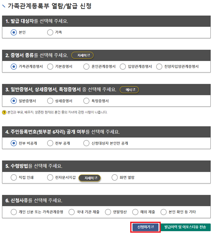 - 형제·자매 등은 온라인 발급 불가 (방문 발급 필요)