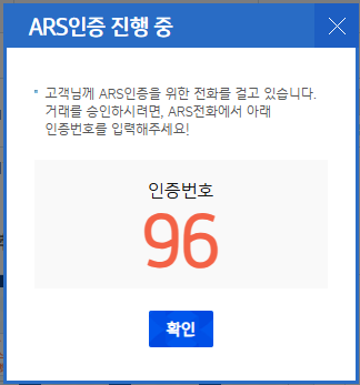 - ARS 인증 시 전화 수신 후 음성안내에 따라 번호 입력