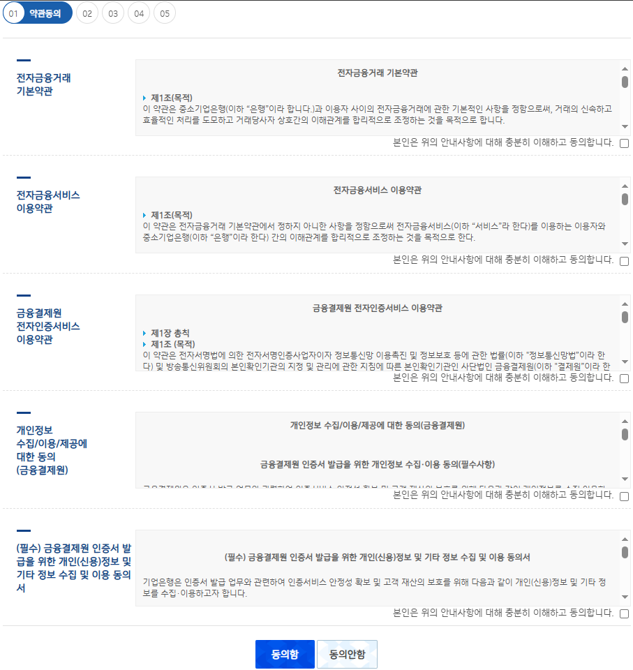 - 금융인증서 이용 약관과 개인정보 수집·이용 동의