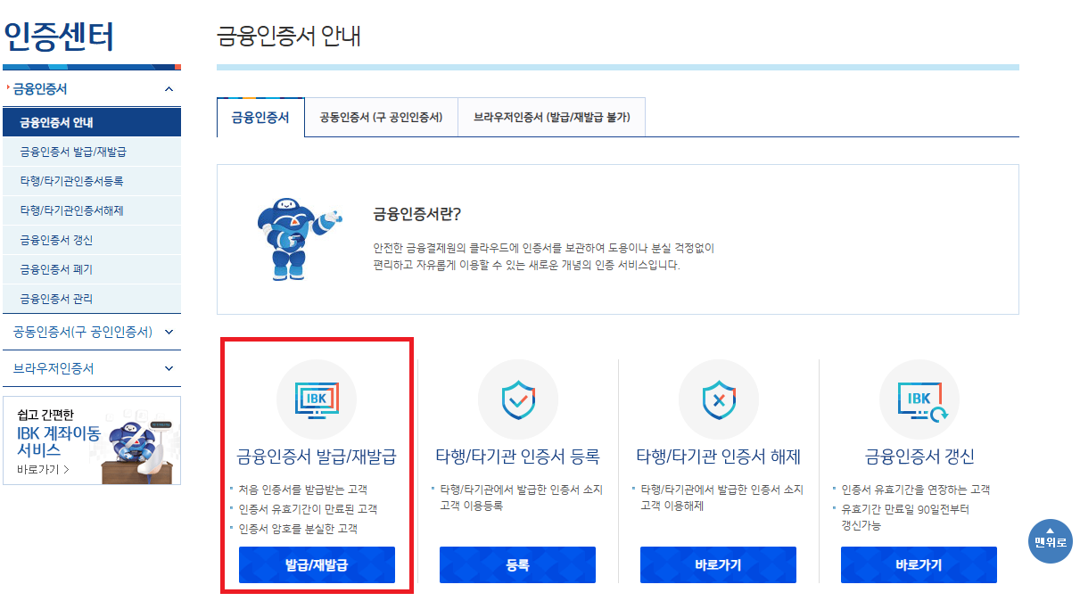 금융인증서 재발급 및 갱신 방법