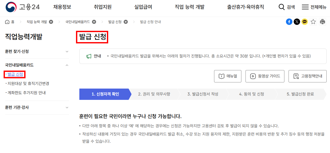 내일배움카드 신청 방법 (온라인 기준)