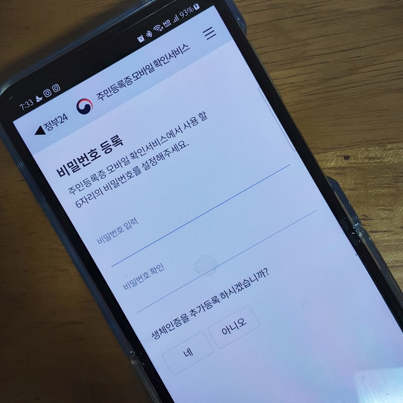 - IC 주민등록증을 휴대폰 뒷면에 태그 → 본인 인증