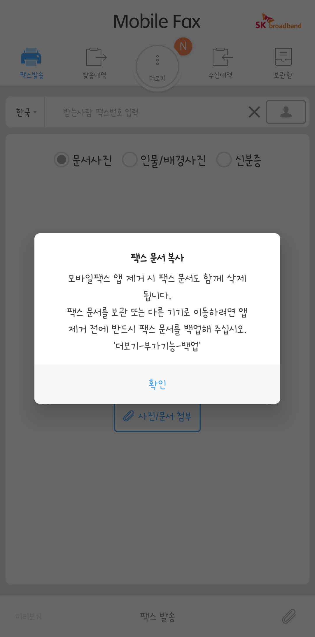 - 앱 삭제 시 수신·발송 내역도 삭제되므로 미리 저장 권장