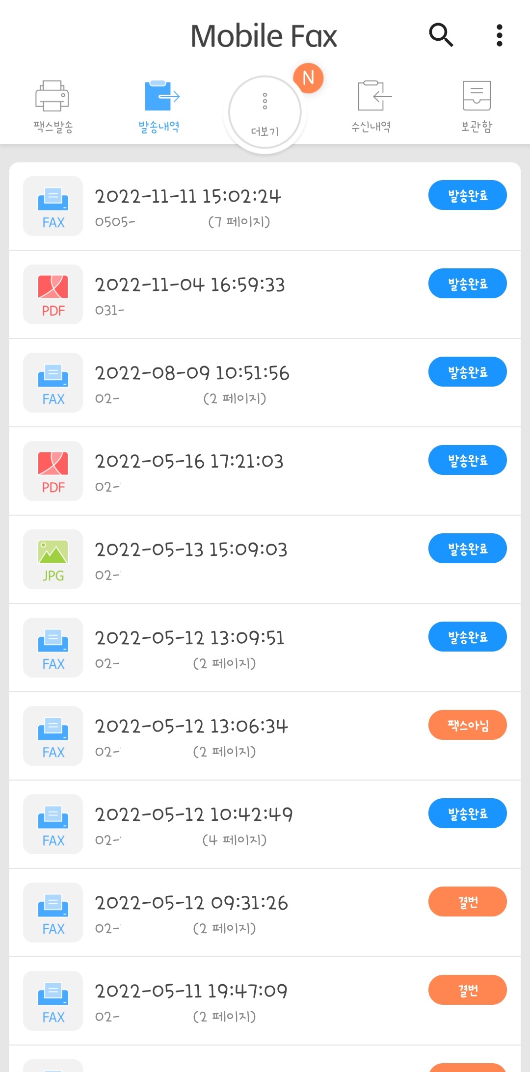 - 가입 시 생성된 050 팩스번호로 상대방이 팩스를 보내면 자동 수신