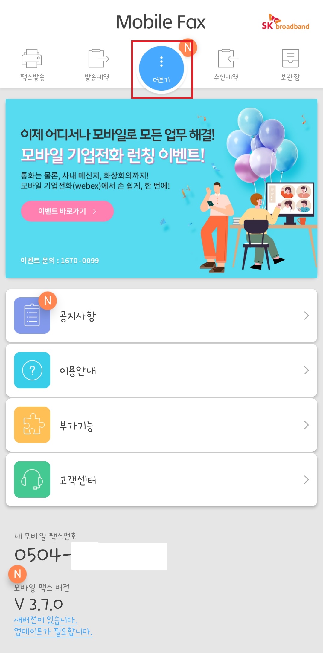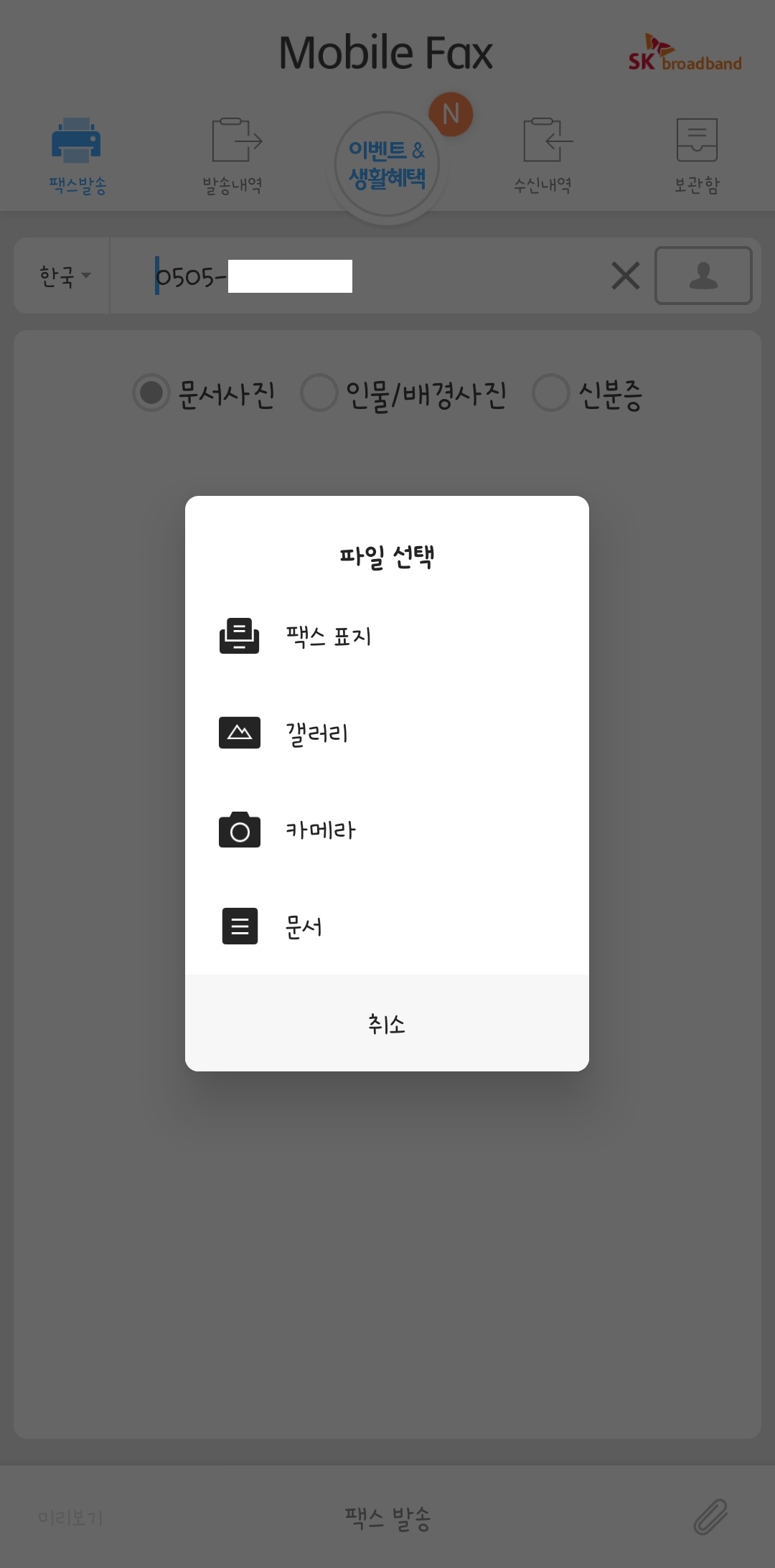 - 가입 시 개인 050 팩스번호가 자동으로 부여됨