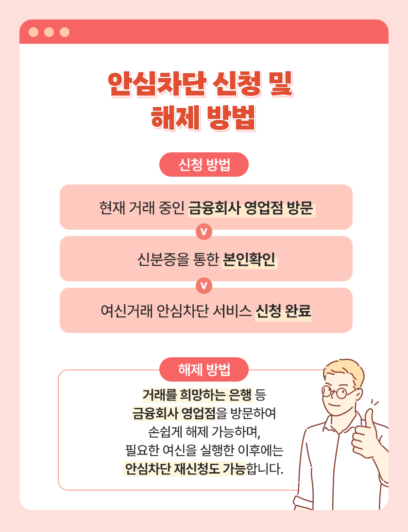 - 신청 후 대출이나 카드 발급이 필요하면 반드시 서비스 해제를 먼저 진행해야 합니다.