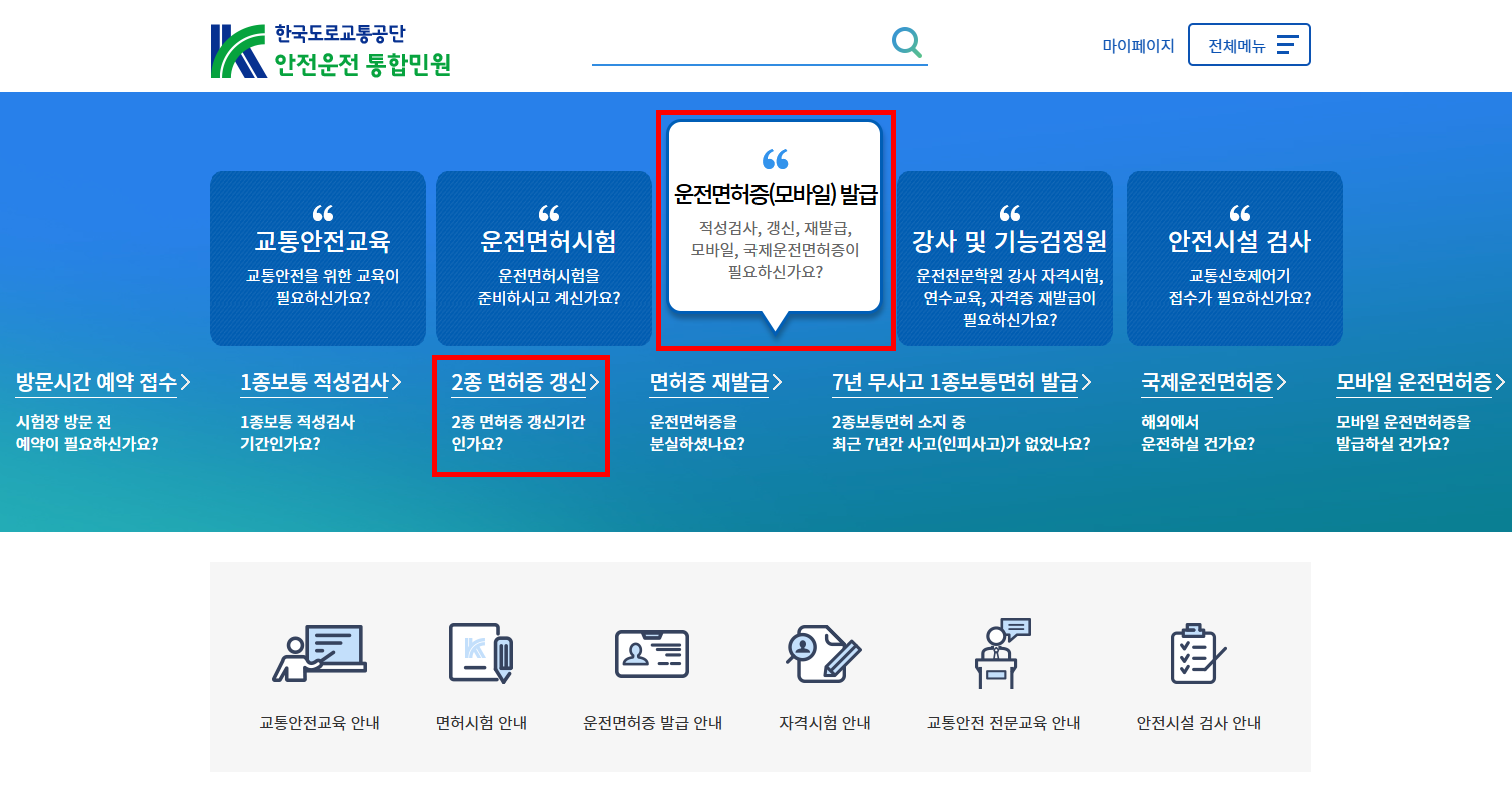 3️⃣ ‘2종 면허증 갱신’ 또는 해당 메뉴 선택