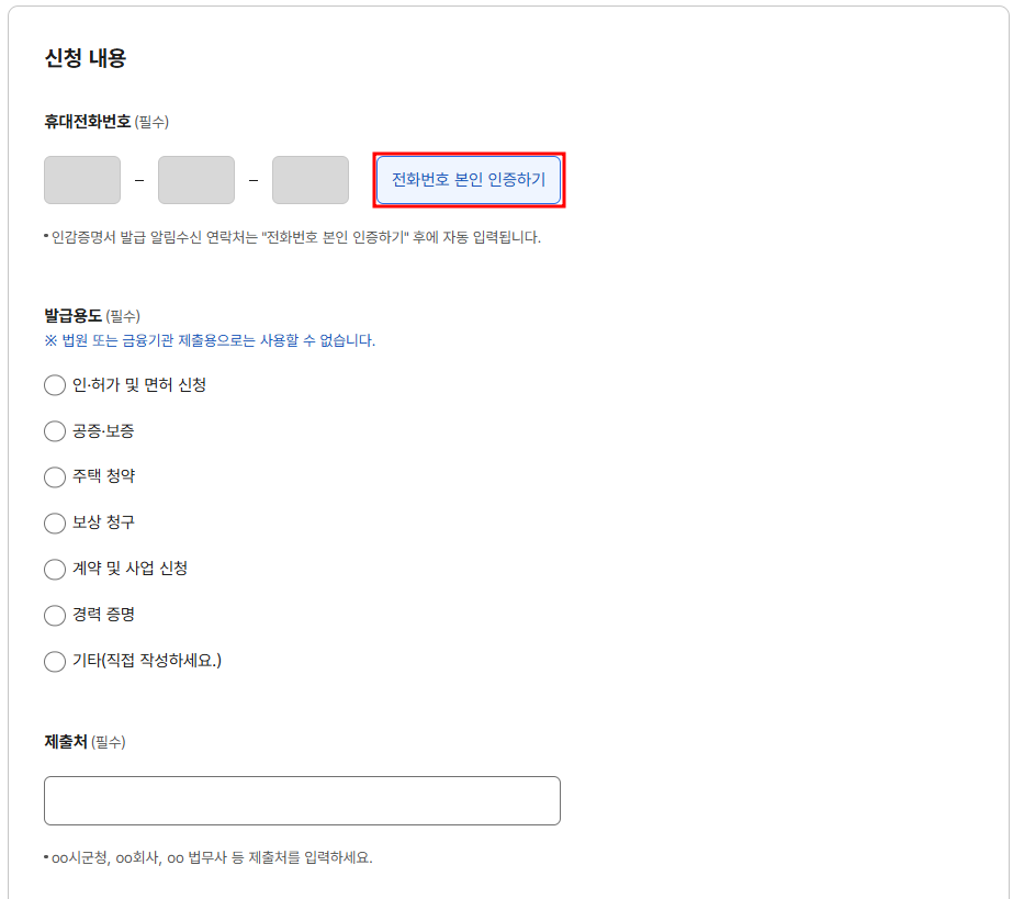 ✔ 일부 기관(부동산 등기소, 금융기관)에서는 인터넷 신청 사실 확인서를 인정하지 않음