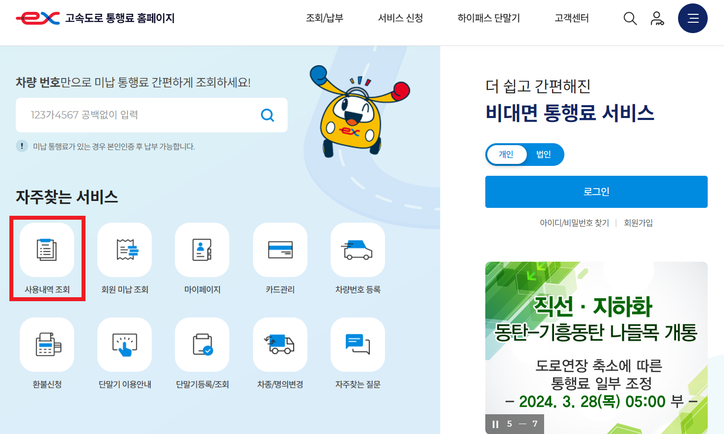 1️⃣ 고속도로 통행료 홈페이지 접속
